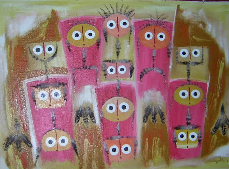 Rhode Bath-Schéba MAKOUMBOU est née le 29 août 1976 à Brazzaville (Congo). Depuis sa tendre enfance, elle a été initiée à la peinture par son père, le peintre David MAKOUMBOU. Elle s’est engagée réellement dans l’art à partir de 1989. Dans sa peinture, elle met en valeur toutes les activités sociales de la femme africaine. Dans les peintures à l’huile, elle peint généralement au couteau. La variété de ses œuvres s’illustre dans le style réaliste et cubiste. Pour lire le dossier sur l'artiste, cliquez ci-dessous : | Serge DIANTANTU