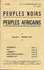 Peuples Noirs - Peuples Africains, publication indépendante s'il en fut jamais, aura un financement totalement indépendant des puissances d'argent. De la même façon, la revue n'a fait ni ne fera acte d'allégeance ni à un mécène, ni à un riche éditeur, ni à un parti politique européen ou africain, ni à aucune organisation d'aucune sorte, mais elle ne s'interdira aucune collaboration ni aucun échange pourvu qu'ils soient fraternels et sauvegardent la dignité de chacun. Notre liberté de critique, allant s'il le faut jusqu'à l'iconoclastie, administrera chaque fois, même aux plus sceptiques, la preuve de cette totale liberté.