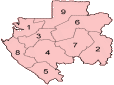 Libreville - Port-Gentil - Franceville - Lambaréné - Mouila - Oyem - Tchimbamba - Makokou - Koulamoutou
