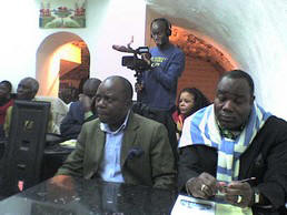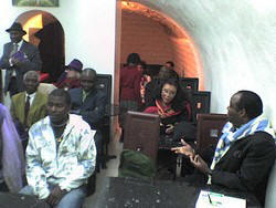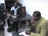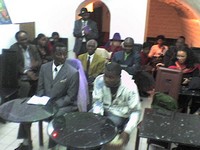 Dieudonné NKOUNKOU, Avocat, poète, essayiste et musicien | La cérémonie a démarré avec l'entrée en scène de Dieudonné NKOUNKOU. Ce dernier a profité de l'occasion pour faire découvrir à l'assistance ses multiples facettes en interprétant un potpourri des chansons de Samba Mascot autour de Mounsongui, une œuvre du début des années enregistrée à l'IAD avec l'Orchestre national du Congo, sur des arrangements de Freddy KEBANO. L'interprétation a été entrecoupée de paroles d'œuvres d'Henri LOPEZ à la mémoire des millions de personnes déportées aux Amériques comme esclaves (Chant de la déportation, chant d'un monde qu'on enchaîne) et à la mémoire de Patrice Emery LUMUMBA, assassiné au Katanga par les Belges avec la complicité de Mobutu. |