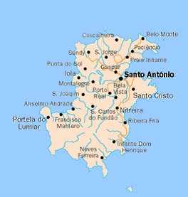 A. Caractéristiques physiques L'archipel de São Tomé & Príncipe est situé entre les parallèles 1º 45' nord et 0º 25' sud et les méridiens 6º 26' est et 7º 30' ouest. Il est situé juste au nord de l’équateur qui passe sur l’Ilhéu das Rolas, située à 5 km au sud de l’ile de São Tomé. L’archipel appartient à un alignement tectonique de 2 000 kilomètres de longueur qui s'étend des Monts du Cameroun à Ilhéu Bombon située à quelques encablures au nord de Príncipe. Il se caractérise par un relief très accidenté et des sols généralement fertiles. 1. Relief Le relief des îles est très accidenté, avec des pentes prononcées. Il est plus raide au centre-sud ouest de l’île de São Tomé, culminant à une altitude de 2 024 mètres au Pic São Tomé. À Príncipe, les parties centrales et méridionales présentent une orographie assez inégale, culminant à une altitude de 948 mètres ; le relief y est moins prononcé qu’à São Tomé. 2. Climat Le climat est de type équatorial océanique, conditionné essentiellement par les basses pressions équatoriales saisonnières, par les vents de mousson du Sud, par le courant chaud du Golfe de Guinée et par le relief, déterminant principal des climats locaux. La température moyenne annuelle au niveau de la mer est de 26,5°C, avec des variations d’amplitude maximales-minimales de 6,8°C. Le gradient de diminution de la température moyenne annuelle du fait de l'altitude est de 0,76°C tous les 100 mètres. Mars et avril sont les mois les plus chauds tandis que juillet est le mois le plus frais. L’amplitude thermique entre les températures moyennes des mois les plus froids et ceux des mois les plus chauds n’est que de 2,8°C en raison de la caractéristique isothermique du climat. Selon la classification de Thornthwaite, les climats thermiques de l'archipel vont donc du mégathermique 23°C à 25°C de moyenne annuelle au microthermique avec une moyenne inférieure à 13°C. À São Tomé le gradient de pluviométrie du nord au sud est d’environ 700 mm par an dans le nord ; il grimpe jusqu’à environ 7 000 mm par an dans le sud-ouest. En fonction de l'altitude et de l'exposition, à São Tomé on rencontre les climats aride (500 mm à 700 mm/an), semi-aride (700 mm à 1 100 mm/an), sub-humide (1 100 mm à 1 500 mm/an), humide (1 500 à 2 400 mm/an) et super humide (2 400 mm à 7 000 mm/an). À Príncipe, les précipitations varient entre 1 000 et 3 000 mm/an, avec des climats de type semi-aride, sub-humide, humide et super-humide. L’archipel présente deux saisons sèches séparées par deux saisons humides. Cette différentiation est particulièrement prononcée dans la zone nord-ouest de l’île, plus sèche (climat semi-aride et aride) et elle est moins importante vers les zones les plus humides. La principale saison sèche (gravana) arrive entre les mois de juin et septembre et la petite saison sèche (gravanito), durant les mois de janvier et février. 3. Hydrographie et ressources en eau São Tomé & Príncipe possède un réseau hydrographique composé de plus de 50 cours d’eau d’une longueur moyenne comprise entre 5 et 27 km et une dénivellation de 1 000 et 1 500 mètres. Il s’agit d’un réseau à caractère radial rayonnant à partir du centre (situé en hauteur) vers la ligne de rivage qui enlace le pays. Figure 1. Réseau hydrographique de Principe